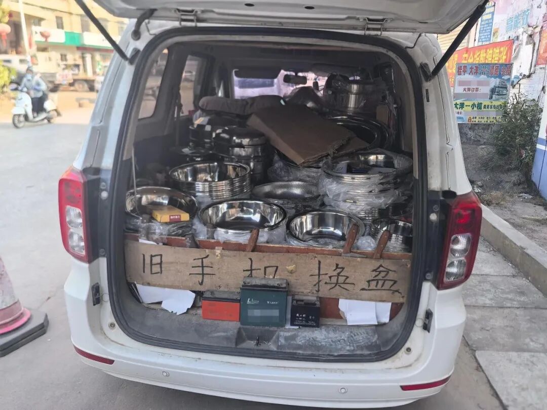 经桂平公安核查,1月26日8时50分许,一名从事旧手机回收置换的男子驾驶面包车途经桂平市大洋镇大莫村,在一处民房前停靠后打开后备箱,向屋主展示不锈钢盆等置换物品,同时询问屋主是否有闲置旧手机可置换。